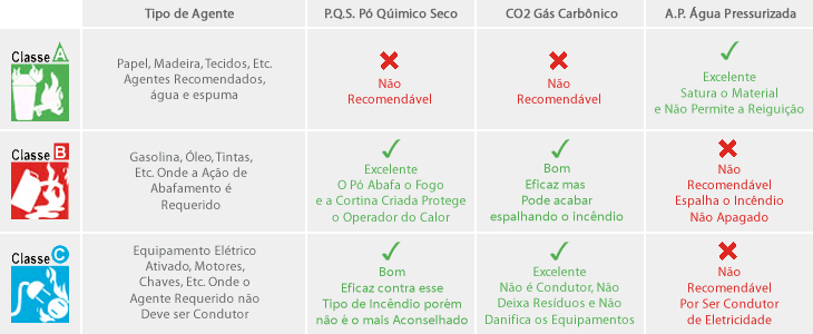 - De forma à extinção de tipos de incêndios, que possam ocorrer dentro da sua área de proteção